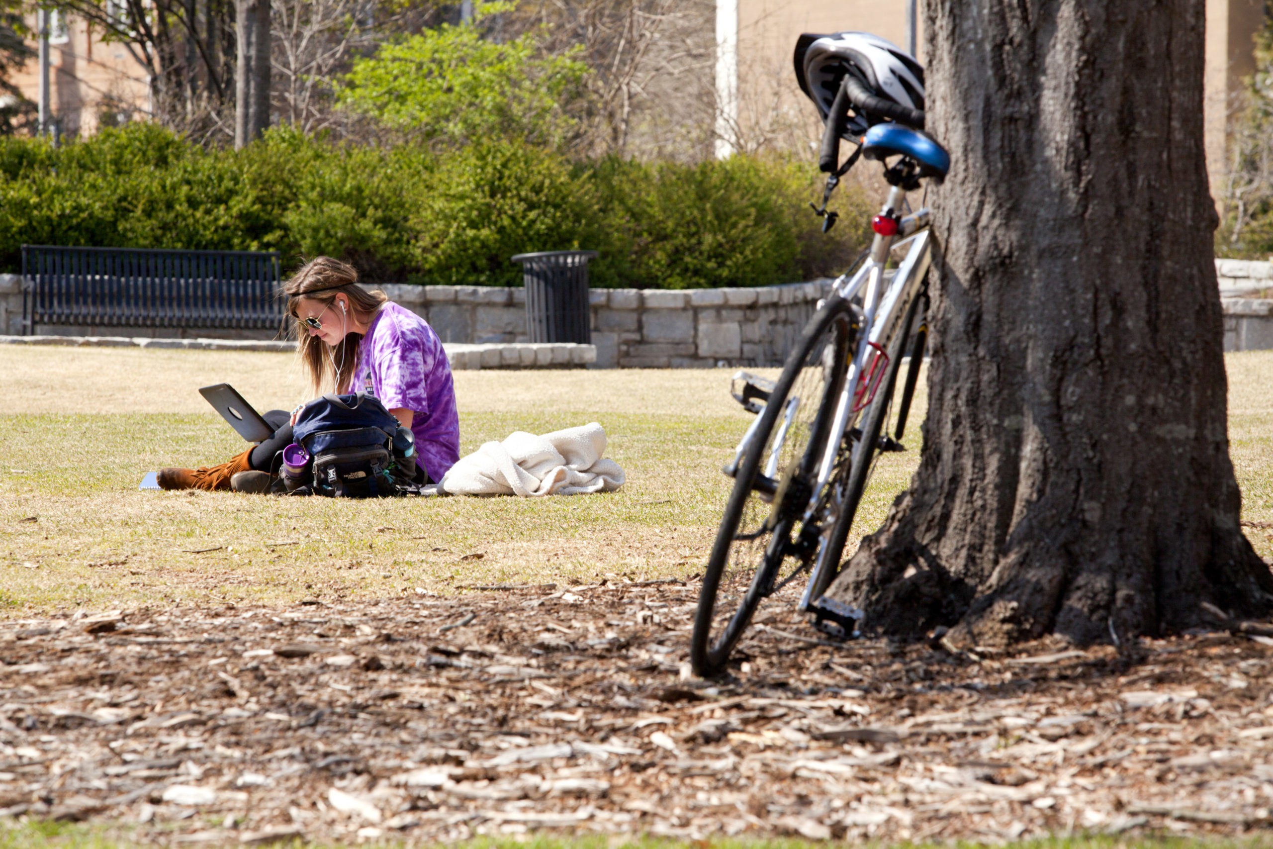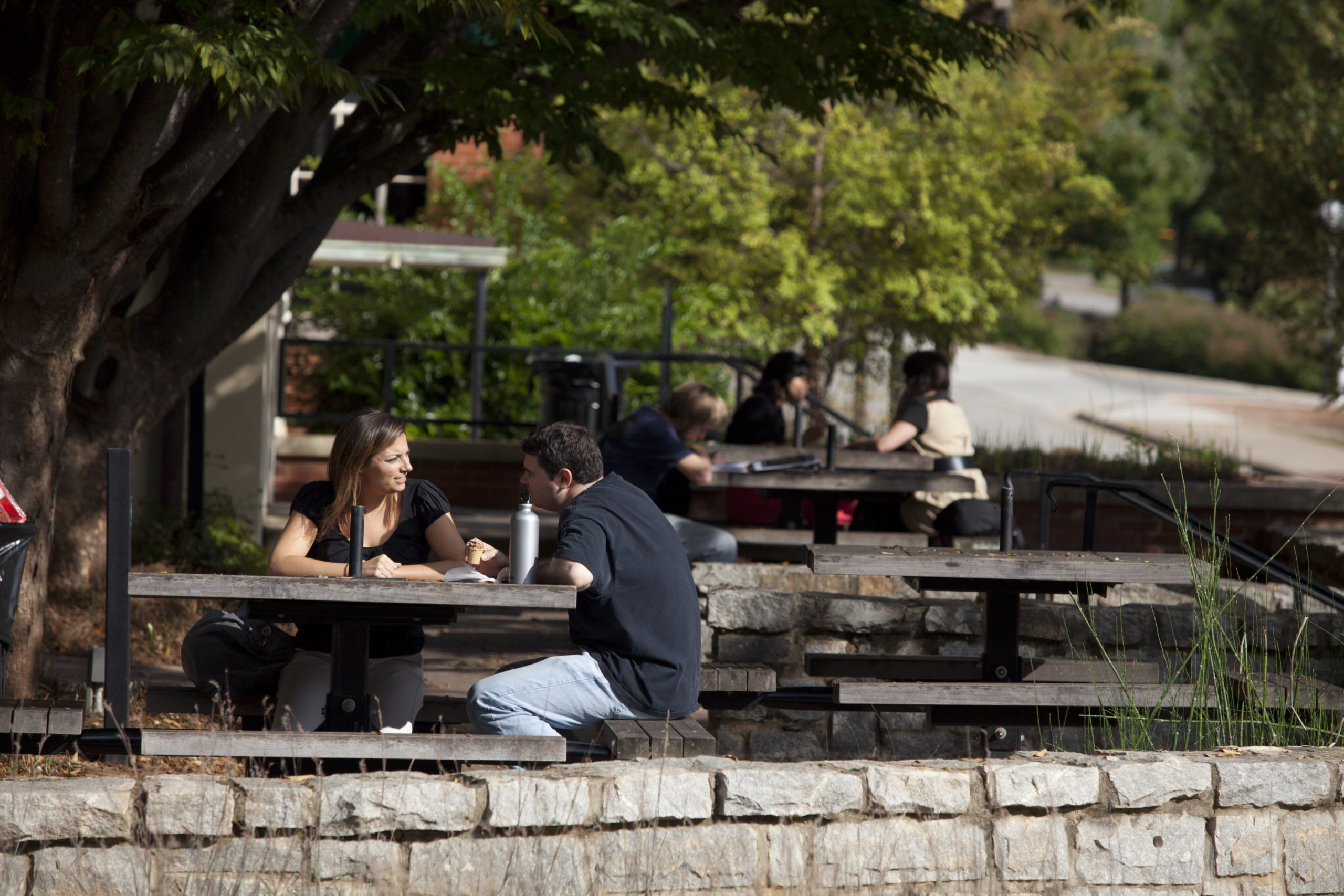 On main campus, there are several outdoor study spaces around the Environmental Health Sciences building. Check out –